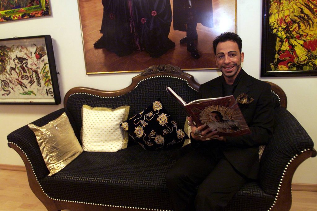 Ein Foto aus dem Jahr 2001 zeigt einen jüngeren Harald Glööckler in seiner “frühen Glanzzeit”. Schon damals war sein Look unverkennbar: prägnantes Make-up, glitzernde Outfits und üppiger Schmuck zeichneten ihn aus. Auch seine markanten Augenbrauen, der gepflegte Bart und die langen künstlichen Fingernägel waren bereits zu dieser Zeit seine Markenzeichen. Harald Glööckler setzte schon früh darauf, sich mit auffälligen Details von der Masse abzuheben und seinem Stil treu zu bleiben.