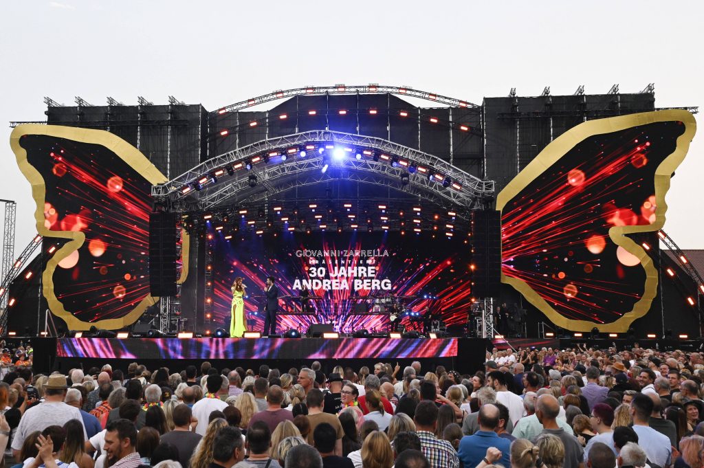 Schon seit 30 Jahren begeistert Andrea Berg (56) die Schlagerfans. Ihr großes Bühnenjubiläum feierte die Ikone mit einer fulminanten Show am Freitag (29.07.) und Samstag (30.07.) in Aspach – die auch für das TV aufgezeichnet worden ist. Am 6.8.2022 um 20:15 ist die „30 Jahre Andrea Berg“- Show im ZDF zu sehen. Präsentiert wird die Feier von Giovanni Zarrella (44).