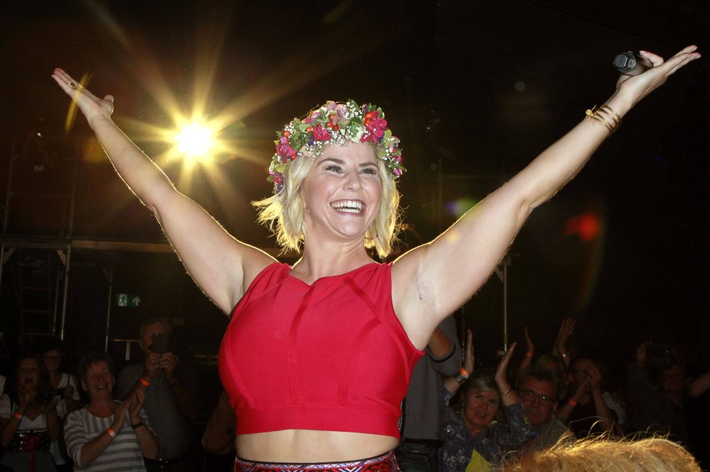 Sängerin Beatrice Egli während eines Auftritts im Rahmen eines Picknickdeckenkonzerts.
